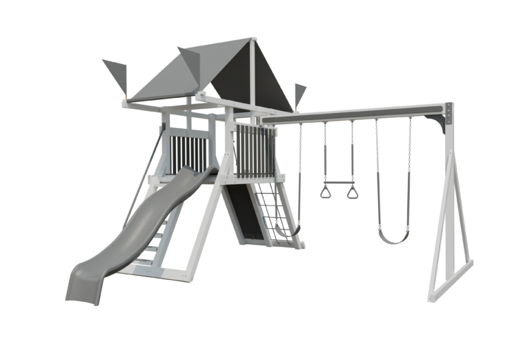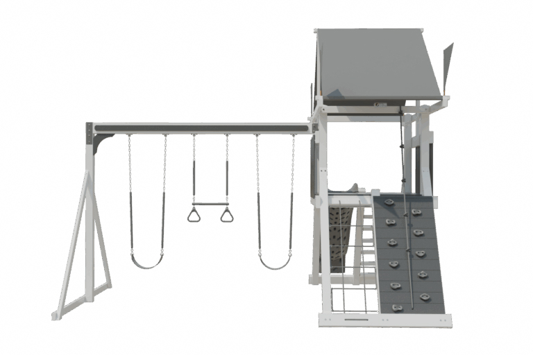 Encourage imaginative and interactive play with an Amish-crafted backyard playset! The Climber 55 RTGO Vinyl Playset is spacious enough for three or four children and designed with fun and safety in mind.